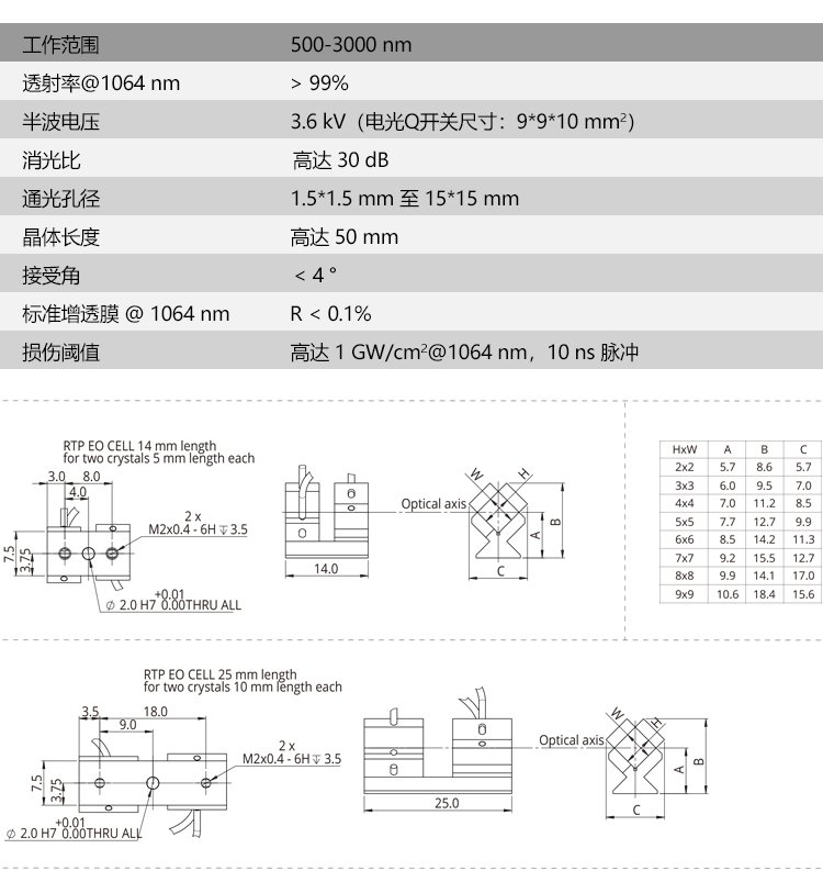 RTP(磷酸鈦氧銣)晶體屬KTP族晶體,是500nm-3000nm光譜范圍內(nèi)電光應(yīng)用的最佳材料